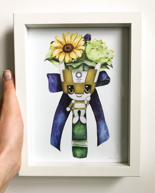 Tokyo Olympic Victory Bouquet and Mascot - Watercolour painting - Print | 20 x 15cm